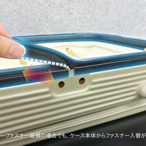 ファスナーケース開閉時のストレスや破損リスクを軽減する事が出来ます。