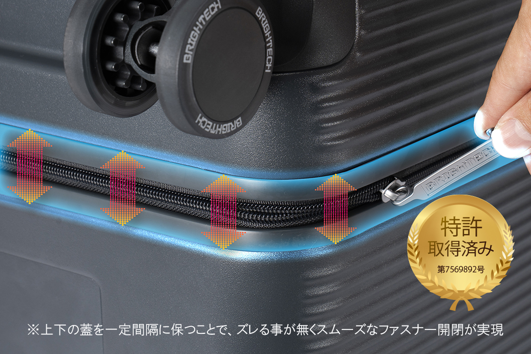 - ・特許取得のフレーム構造により、両蓋のファスナー間隔を一定に保ちます。